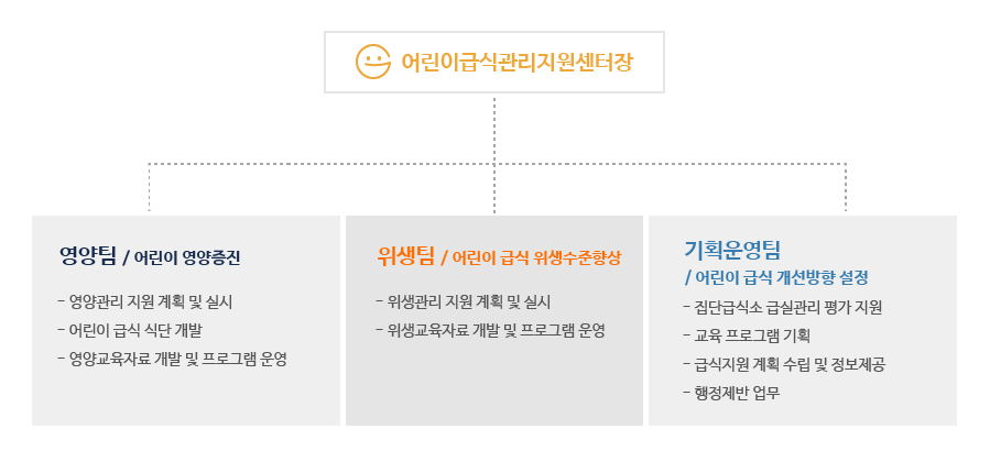 - 어린이급식관리 지원센터를 올바른 어린이 식문화를 선도하는 기관으로 포지셔닝, 어린이 건강증진을 위한 전문성 강화